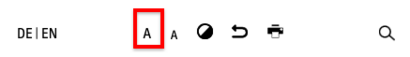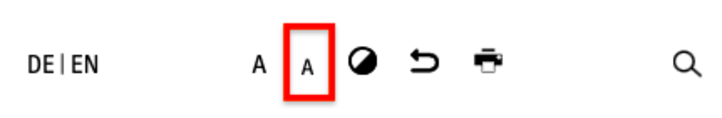 Klicken Sie auf das größereA, um die Schrift größer zu machen.