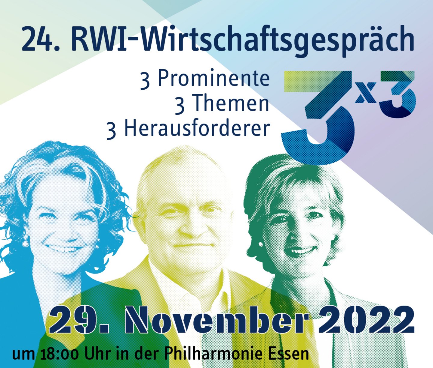 RWI Wirtschaftsgespräch 3x3: 3 Prominente, 3 Themen, 3 Herausforderer