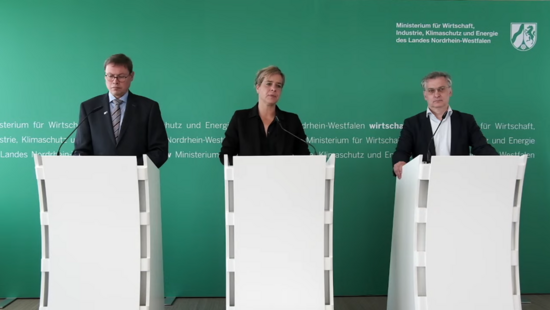 02. Juni 2023: RWI-Konjunkturchef Torsten Schmidt stellt zusammen mit NRW-Wirtschaftsministerin Mona Neubaur und Ralf Stoffels, Präsident der IHK NRW, den aktuellen Konjunkturbericht NRW vor. Er trägt den Titel „Konjunkturelle Erholung bleibt schwach“. Das RWI erstellt den Konjunkturbericht NRW dreimal jährlich im Auftrag des Ministerium für Wirtschaft, Industrie, Klimaschutz und Energie des Landes Nordrhein-Westfalen.