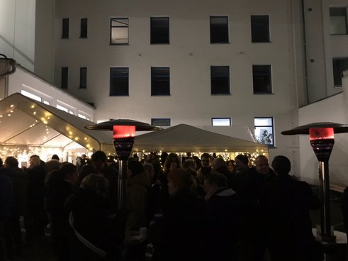 14. Dezember 2023: Nachdem die Outdoor-Premiere der RWI-Weihnachtsfeier im Vorjahr großen Zuspruch gefunden hat, findet sie erneut in Weihnachtsmarkt-Atmosphäre im Innenhof des Instituts statt. Bei Glühwein, Waffeln und Burgern besteht reichlich Gelegenheit zum persönlichen Austausch. Und auch zum Austausch aussortierter Dinge, die beim Schrottwichteln neue Besitzer/innen finden.