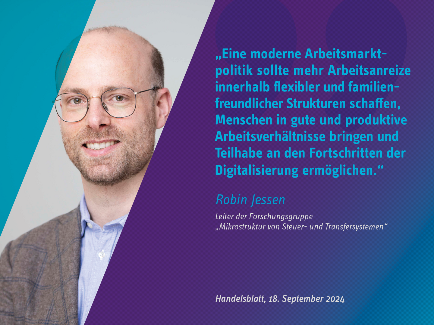 Gründung der Forschungsgruppe "Mikrostruktur von Steuer- und Transfersystemen": Die Forschungsgruppe erforscht die Wirkung von Reformen des Wohlfahrtsstaats auf mikro- und makroökonomischer Ebene. Welche Effekte haben Reformen auf die Konjunktur, das Arbeitsangebot oder die Einkommensverteilung? Wie können Steuer- und Transfersysteme gestaltet werden, damit sie einerseits gerecht sind und den Bürgern Versicherung bieten und andererseits gleichzeitig ökonomisch effizient sind?