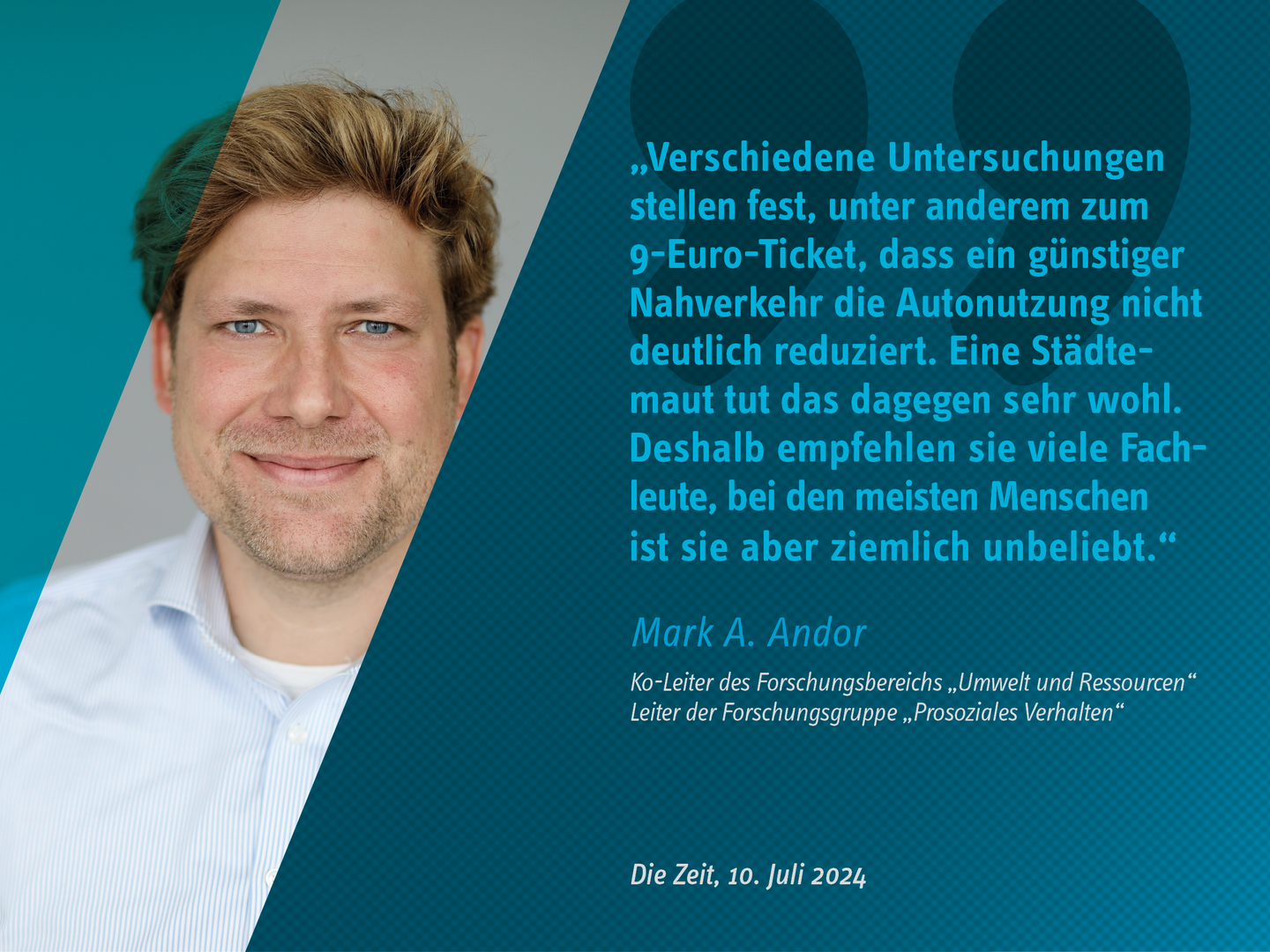 - Mark Andor wurde im Mai 2024 zum Ko-Leiter vom Kompetenzbereich "Umwelt und Ressourcen" berufen. Damit verbunden ist zugleich die W3-Professur „Verhaltens- und Umweltökonomik“ an der Ruhr-Universität Bochum.