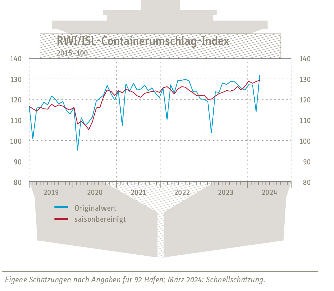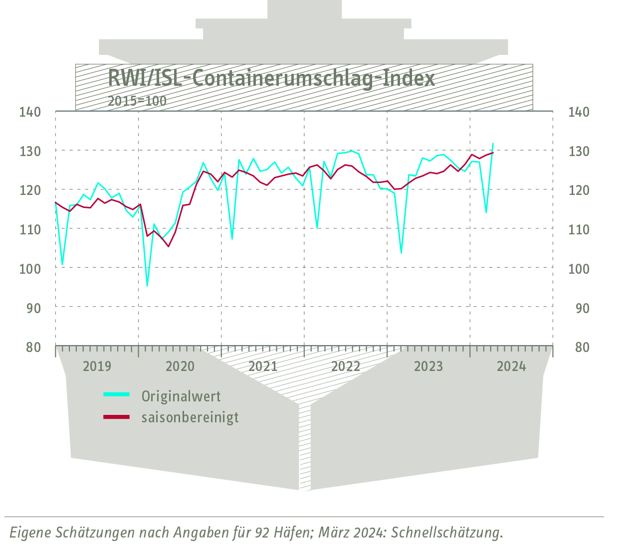 • Der RWI/ISL-Containerumschlag-Index für April 2024 wird am 29. Mai 2024 veröffentlicht.
